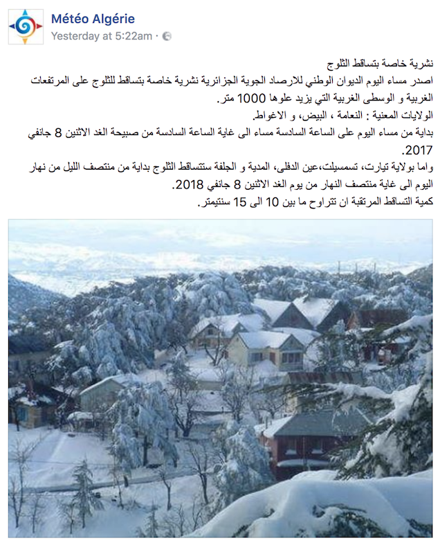 Az algériai hatóságok tegnap ritka figyelmeztetést adtak ki: kritikus a hóhelyzet a Szaharában.