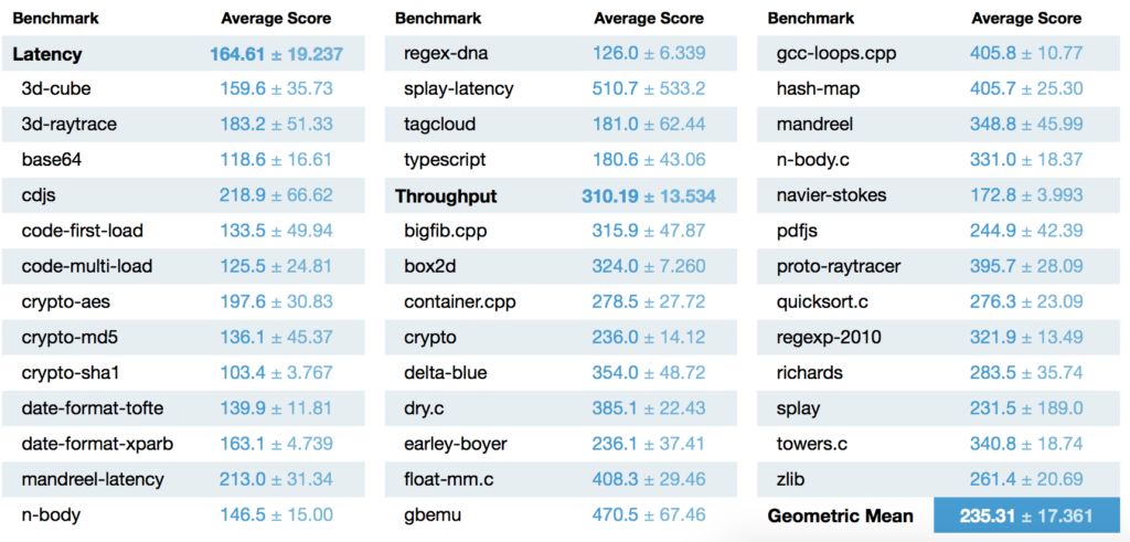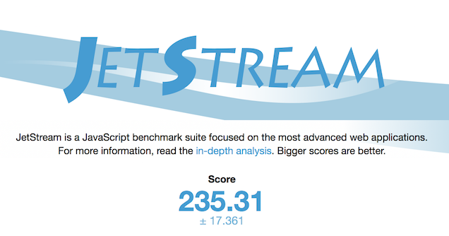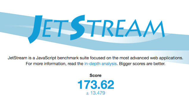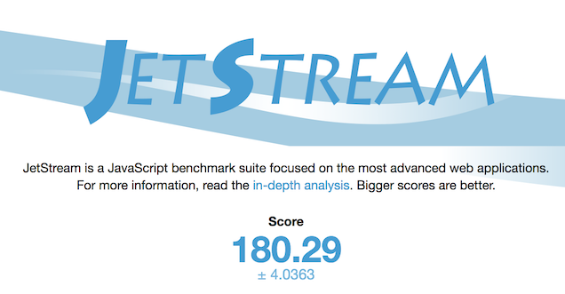 Két különböző tesztet használtam, az egyik, a JetStream , ez a böngésző általános képességeit vizsgálja, jó persze alig néhány szempont alapján: