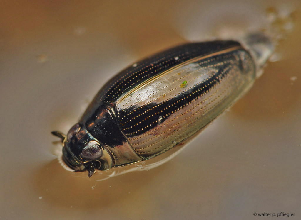 “Ha óvatosan közelítünk egy kis tiszta vizű tóhoz vagy egy patak csendesebb folyású, árnyas szakaszához, csillogó pontokat láthatunk a felszínen, melyek körök, hurkok vagy nyolcasok mentén haladnak. Ők a keringőbogarak. Magyarországon 9 fajuk él, közülük leginkább a közönséges keringőbogárral (Gyrinus substriatus) találkozhatunk.