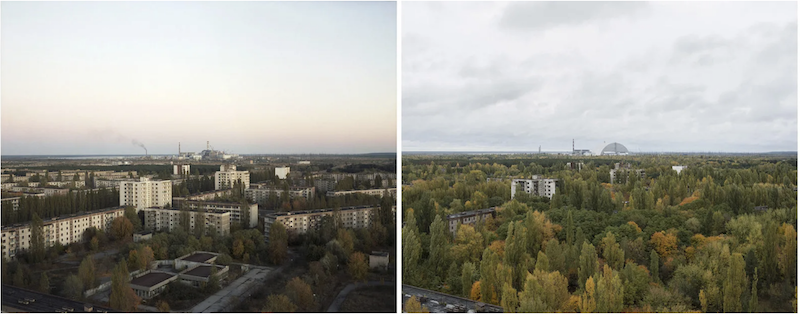 Van viszont egy sokkal érdekesebb olvasata. David McMillan fotósként 1994 óta visszajár az 1986-os helyszínre és megörökítette, hogyan változott a táj és hogyan szerezte vissza a természet az emberek által elhagyott területeket.