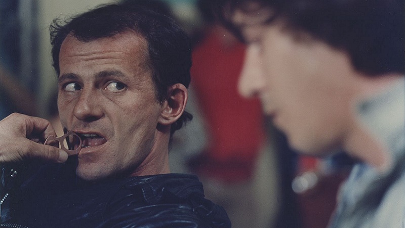Különösen hangzik? Nézni még furcsább, a Somló Tamás által előadott főcímdal rögtön az életközepi, eleji, bármikori iránytalanságról szól, mellette Cseh Tamás bánatos szemmel néz a nyamvadt, éppen általa rendezett kirakaton nagyon messze túl. Innen autós-motoros üldözésre váltunk a Rákóczi úton, furcsamód komolyabban vehető, mint mondjuk az Aranyélet bohóckodásai, egészen addig, míg az üldöző elvtársak a rendőrautóban nem próbálnak dörzsölt zsarunak tűnni nyugatról (“ócska kis nepper, úgyis elkapom”). Buksi, a motoros fenegyerek hipp-hopp egy Szigony utca panelház alatt terem, ha jól láttam, és a kapun dörömbölve pont Péterbe (CST) botlik, akinél menedéket talál. A komcsi nihil legközepén tengődő romantikus férfialak, mármint Péter annyi életrajzi hasonlósággal bír eljátszójával, hogy szintén zenész rajztanár volt, sikertelen festőművészi próbálkozásaira is utalnak. Ahelyett azonban, hogy rossz verseket írna vagy elmenne Lisszabonba, az önsorskovácsolás vagányabb, bár antiszociálisabb formáját választja, távirányított bűnbanda feje lesz.