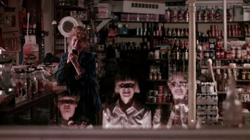 Fene tudja, hogyan, nyilván az atom. A sokkolónak szánt képek a jól láthatóan kicserélt gumihullákkal max. az idétlenségükkel döbbentgetnek, és azzal a káprázatos csavarral, hogy a gonosz kölköknek fekete a körmük, így egy idő után a kezük lecsekkolása lesz az izgalom egyetlen forrása, mihelyt felbukkan egy. Mármint a nézőnek, a szülői munkaközösség egészen soká szenved azzal, hogy szembenézzen a felfoghatatlannal, aztán nekiáll elfajzott sarjai lehentelésének. Az olcsójánosságnak megfelelően a drámai csúcspont, a kikattant papa kislányának lemacsétázása egy autó takarásában történik meg, természetesen vér nélkül. Pár szétdobált játékbaba-darabot mutatnak nagy kegyesen a záró körkapcsolásban. A film erőssége állítólag a Péntek 13-zeneszerző, Harry Manfredini score-ja, de ezt is csak az internetről tudom, a zenéből egy hangot nem tudnék felidézni. [És hogy mi lett a randival? A pincérnő lesírt sminkkel ment haza este, mert a seriff éppen az atom gyermekeivel volt elfoglalva, járhatott volna rosszabbul.]