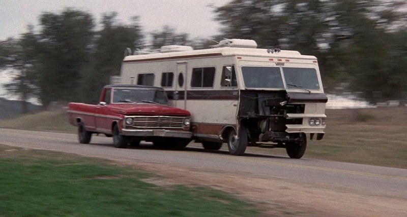 A ’70-es évek több amerikai obszesszióját, a Manson-család utáni hippiiszonyt és a járműmelegkedést (bár az nem évtizedfüggő, hanem örök) egyesíti Jack Starrett rendezése, a főszerepben sztárok (Peter Fonda, Warren Oates) mellett egy hét nyelven beszélő rekreációs járművel. A korszak mintapárjai, Roger és Frank Burda-feleségeikkel indulnak Texasból a coloradói Aspenbe síelni. Utóbbi onnan volt gyanús, hogy Hunter S. Thompson indult ott az 1970-es seriffválasztáson (rontóc: vesztett). Frank büszkesége, a sztereó kazettás magnóval, színes tévével és mikrohullámú sütővel felszerelt Vogue 32′ Villa Grande le is nyűgözi az autóhívő amcsikat („We’re self-contained, baby!”). A civilben salakmotoros férfiak vezetik a csodajárgányt, az asszonyok foglalkozása titokban marad. Biztos homemaker mindkettő, mint minden rendes amerikai nő akkoriban, bár ennek a határait kicsit feszegeti, hogy önként elmennek a könyvtárba (!) a cselekmény későbbi pontján, megfejteni a lappangó gonosz által a kitört hátsó ablakba akasztott fenyegető okkult cetlit, sőt a gyanús könyvtáros néni orra előtt (!) ki is lopják a könyvet.