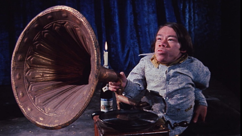 A tudományos szópárbajok után ifjúsági horrorból vagy keményebb felnőttmeséből szalajtott törpék és púpos alakok ólálkodnak a parkban, és kapják el a botrányosan gyenge idegzetű, tájékozódásból is csapnivaló szőke modellt – a leányt simán kimozogják a félbevágott nokedlik, és elalél, amikor találkozik a krumpliarcát kalap és kabátgallér mögé rejtő fojtogatóval. Az elefántemberre maszkírozott, csak nem olyan jámbor „Lynch” (Tom Baker, a majdani Ki vagy, doki? Dr. Who) hivatásos áldozat amellett, hogy másokat hord Nolter doktor műtőasztalára: a vidámpark fantomjaként emeli öklét a kegyetlen égre, és még hivatásos repedtsarkúak is csak felárért mondják ki neki azt az egy bizonyos szót, ó jaj. A söprögetőként működő freak-színtársulat a legegyértelműbb, khm, omázs az eredeti felé, a számkivetett törpék, szakállas nők, perc perecemberek és humán tűpárnák csak egymásra számíthatnak. Megható szülinapi bulijukat ezzel együtt szétrúgja az idegbajos Lynch, amikor meginvitálják, ünnepeljen velük, sőt elhangzik a „befogadjuk” is – ő nem holmi legalja rühedék, rohadjanak tovább! A megannyi alternatív szépségeszményt megtestesítő, élőben is törpe stb. színész szerepeltetése ma már felvet kérdéseket, bár gondolom mindannyian önként, kellő pénzért vállalták.