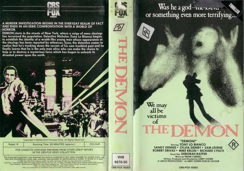 De figyelem, nem pontatlannak vagy túlzónak! Nagyjából ez a lényege Larry Cohen okkult-sorozatgyilkos-tudománytalan fantasztikus és még ki tudja milyen társadalmi melodrámájának. A keleti part egyik fő szemétgyárosa itt a rovatban a New York egén észrevétlen sunnyogó azték óriásmadárral szerepelt, de neki köszönhető többek közt a Stuff annyira nem álcázott fogyasztózombi-allegóriája vagy az It’s alive gyilkos csecsemője babakocsistul. A magyar keresztségben, bár máshol is a kissé semmitmondó Démon címet kapott GTMT az exploitation marháskodása helyett a maga primitív módján tényleg zavarbaejtő, sőt émelyítő helyenként, ami egy ilyen vasvillával összehányt, kereskedelmi célú céllövöldétől [képzavar, bár végül is miért ne lehetne céllövöldét összehányni] nagy szó.