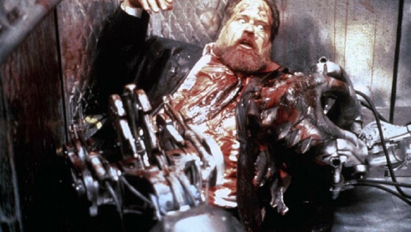 Stephen Norrington 1994-es akció-sf-horrorja (az imdb szerint, már ha valaki egy szörnygéptől megijed) a kiberpunk még meg nem poshadt álmát ragadja torkon és fordítja ki könyékig ledugott kézzel, mondhatnám zsurnalisztán, de hát az az igazság, hogy nem. Már a cím balladai, hogynemondjam primitív egyenessége jelzi, hogy kőegyszerű a történet, a toposzok erejét az egyszerre keménykedő és szatirikus hangnem adja, ami az angoloknak úgy látszik csuklóból megy a disztopikus jövőbeli Frász Bíró (a képregény, 1977) óta, az amerikaiak viszont annyit fogtak fel belőle, mint tyúk az ábécéből. Példa rá pont a dedós Judge Dredd-gyalázás Sly bamba állával, a 2012-es változat már jobban közelít. Itt egyből beindul a talpig acélkék nyakkendős vállalati intrika a félmillió emeletes székházban, a főnökasszony Hayden Cale (aki itt levette az állúziót, kérem szóljon, pont ebben a névben nem látok) megkeresi az alagsorban a félrement fejlesztésért felelős csodagyereket. Az egész filmre jellemző, nagyszerű videóklip-stílusban bejárt pincemélyi kanbarlang minden feministák ábrándja, a magára hagyott, kiöregedett kamasz akciófigurák közt szövögeti vágyképeit az erőszakről és persze másról is, ebből faragja ölőgépeit, melyeket a cég értékesít. A túlkoros rockerhacker-wunderkind, Jack Dante a sf-zsenik idegesítő szokása szerint bármit meghekkel, csak azt nem látja, ami az orra előtt van. Brad Dourif alakítja, a turbófokozatú színészt a magyar néző, legalábbis én, Lynch Dűnéjében láthatta először Piter De Vries, a Harkonnen-mentát vastag sminkjében. A feje már ott is megvan hozzá.