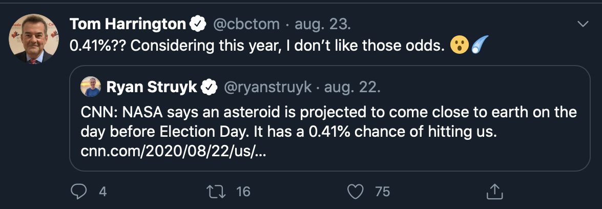 Hétfő van és a NASA szerint egy aszteroida tart a Föld felé. A becsapódás valószínűsége 0,41%. De ne felejtsük el, hogy 2020-at írunk és hogy eddig milyen szar ez az év.