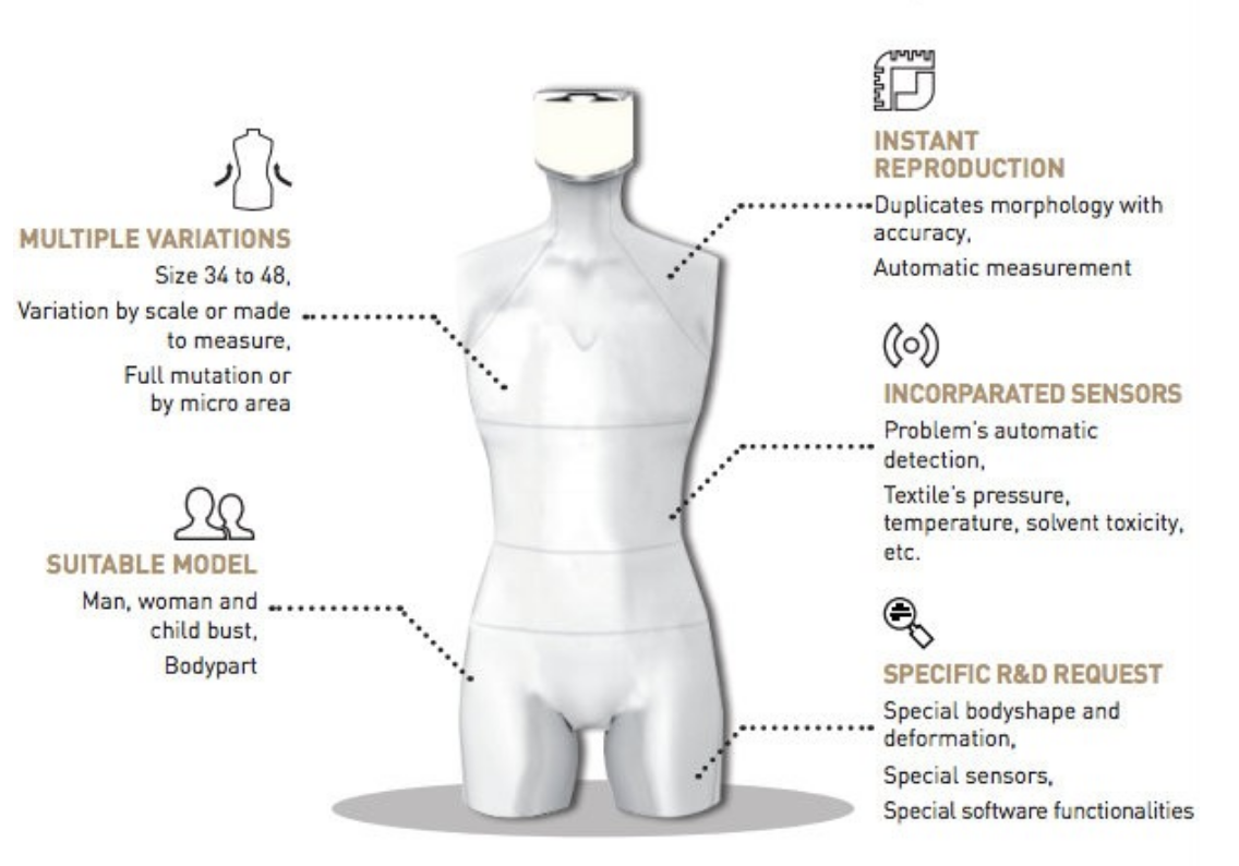 Simply enter your requirements in the accompanying app – tall, short, narrow-hipped, busty or slouched – and the mannequin will shape-shift before your very eyes, turning into an entirely new person in half a minute or so.