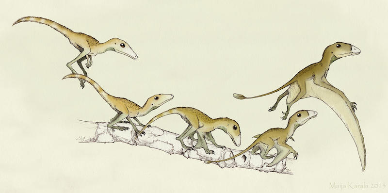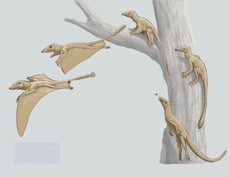 – Ám van olyan elképzelés is, ami szerint ezek a hüllők a talajon éltek és onnan emelkedtek fel (veszély esetén), először futva, majd szárnya kapva az őket üldöző ragadozók elől. Nos, lehet, hogy ezt sosem fogjuk megtudni (hacsak valamilyen bizonyító erejű fosszília elő nem kerül).