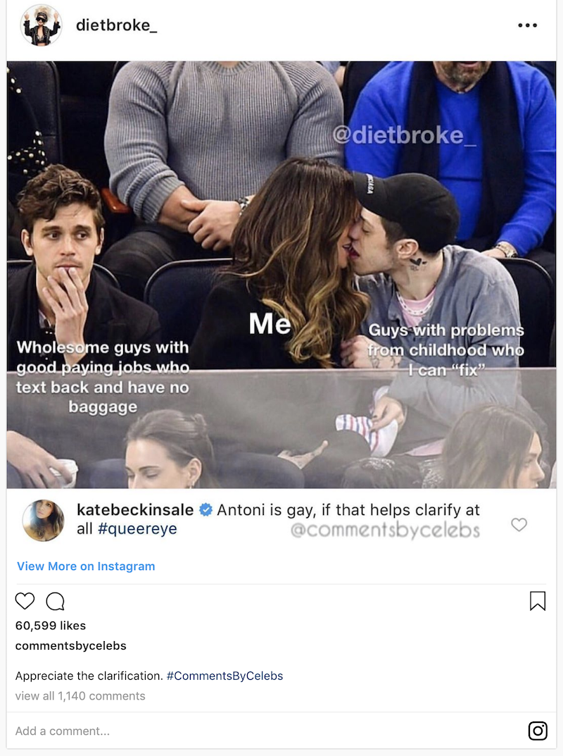 Kate okos lány, így szépen levezette, hogy vannak a fiúk, akiknek a gyerekkori terheltségét fel tudja oldani (jobbra a bézpólsapis Pete Davidson), balra meg a számítózós nagymenő srác, aki bemutatta, hogy jól fizető állása van és onnantól ő az Élet Császára.