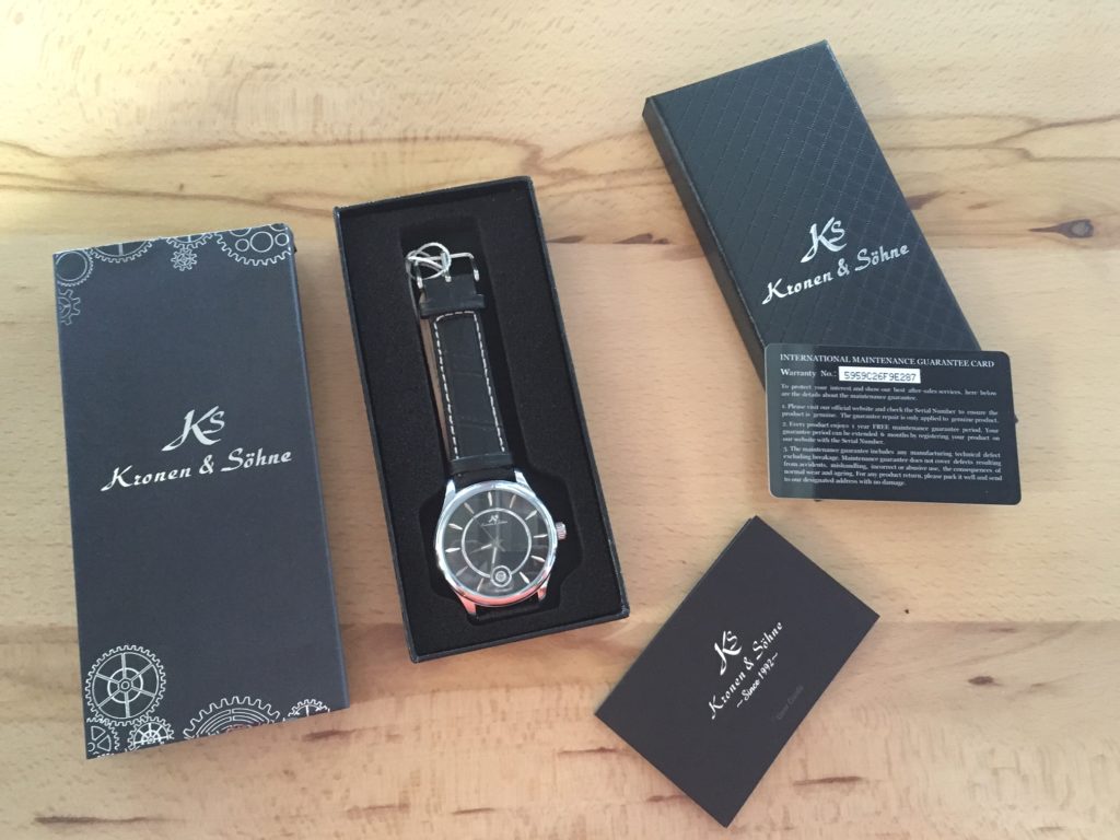 Látszik, hogy németes precizitással állították össze a csomagot. Az óra gyönyörű EVA szivacs-tokban érkezett, amelyet egy erősített, mintás kartontokba helyeztek a kis tájékoztató füzettel és a garanciakártyával, ami meg plasztik. Szóval minőségi darab, ízig-vérig hozza az elvártakat a csomagolása is, még ha nem is a klasszikus órás díszdobozban érkezett.