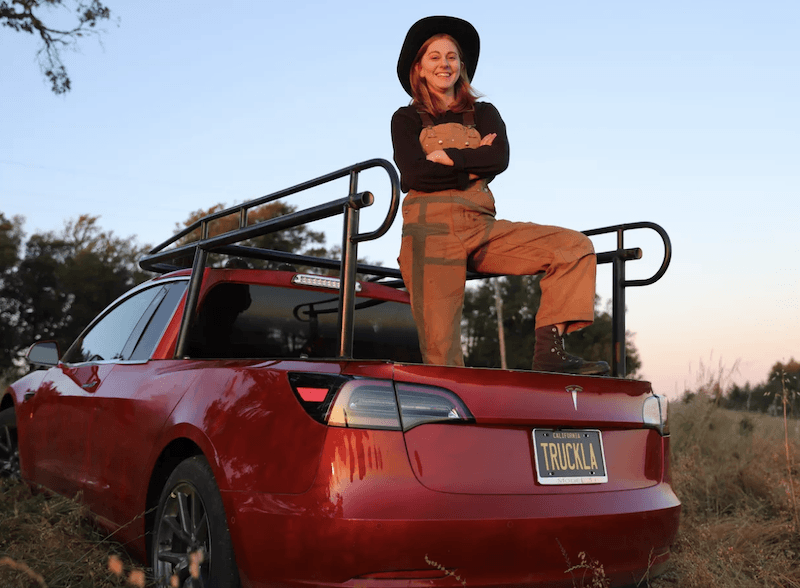 She really did it! Watch @SimoneGiertz transform her @Tesla into the world's first "#Truckla" → https://t.co/LiGGXeLXtt pic.twitter.com/I55h5zQH4I