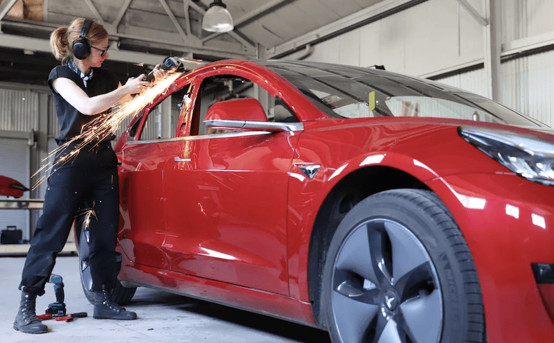 Szegény autó mindvégig panaszkodott a Tesla főhadiszállásnak, nem számított ilyen beavatkozásra, ahogy egyébként a gyártó sem. Ez persze Simone-t nem hozta zavarba és nem is végzett fél munkát.