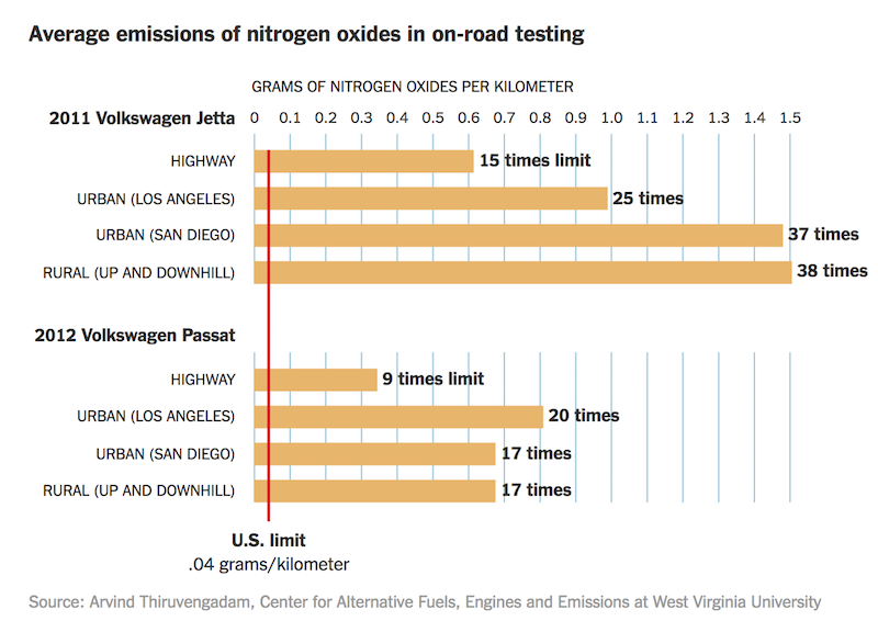 Az elhíresült dízel botrány óta lehetett tudni, hogy a VW-csoport nem kicsit csalt a közzétett NOx értékekkel, utóbb több kutatás is kimutatta, hogy 10-40x-es túllépés mutatkozott a hatérértékekhez képest. Ha ezt párhuzamba állítjuk azzal, hogy az Európai Parlament jelentése szerint évente 72 ezer ember halála hozható összefüggésbe a dízel kipufogógázok okozta egészségkárosodással, látható, hogy a csalás nem annyira ejnyebejnye kategória. Az USA ezért 26 milliárd dollárra büntette a VW-t.