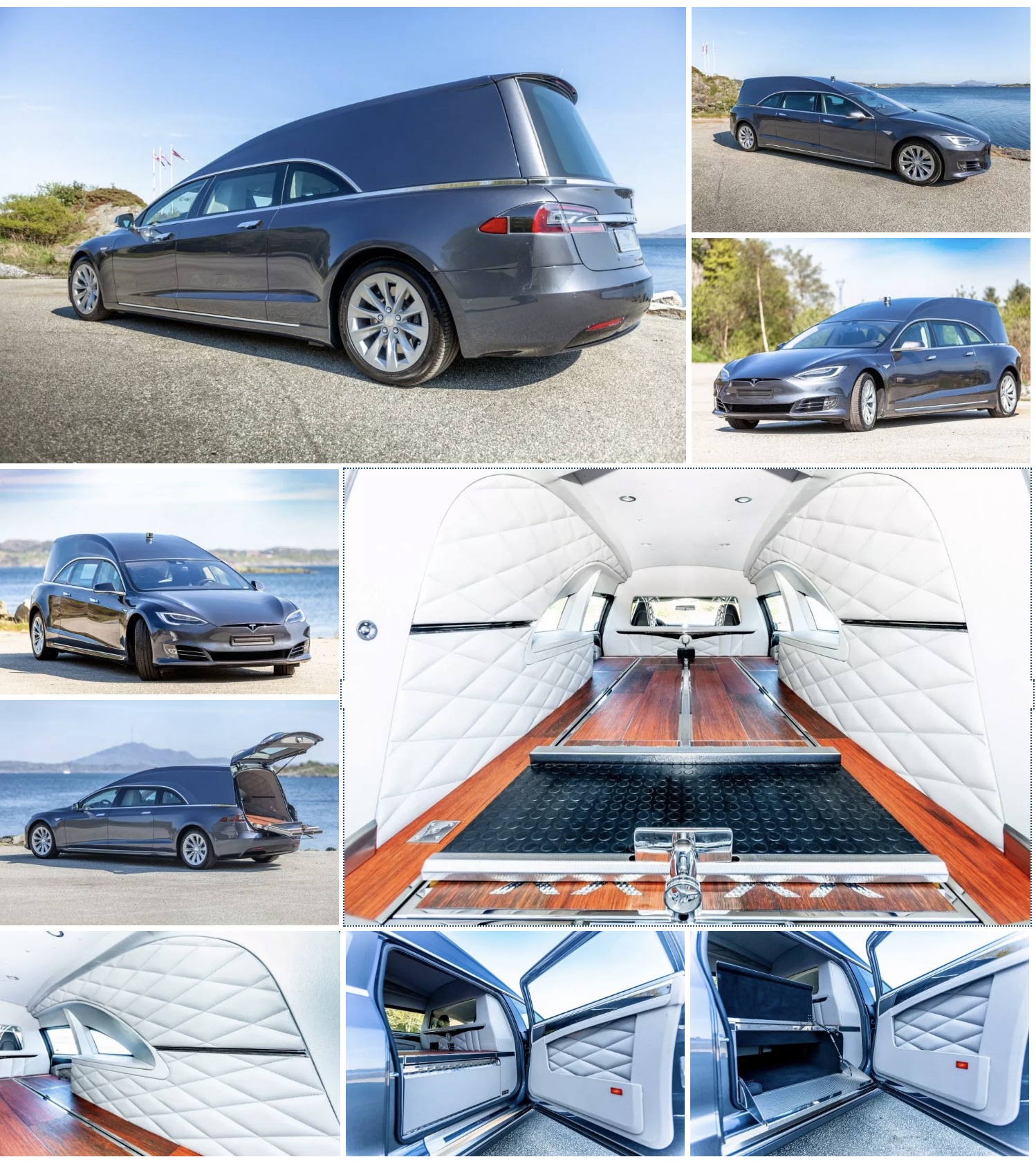 Az alkotói fantázia nem ismer határokat. Mire is lehetne alkalmasabb egy 3-4 mp alatt százra gyorsuló Tesla a halottas kocsinál?