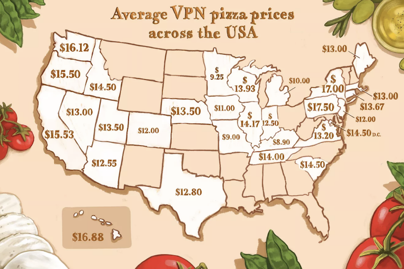 Az USA egyes államaiban ugyanazért a pizzáért teljesen különböző összegeket kérnek.