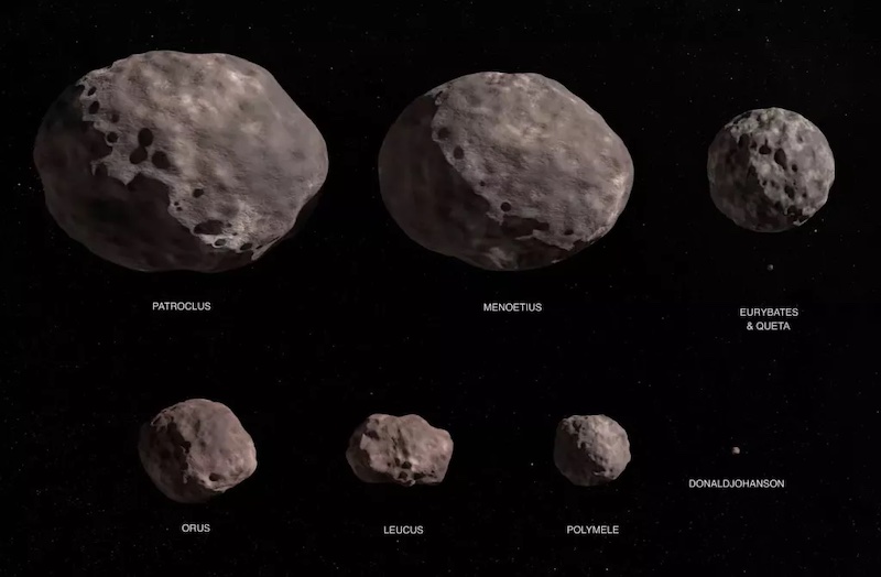 Lucy is named after the 3.2 million-year-old skeletal remains of a human ancestor found in Ethiopia nearly a half-century ago. That discovery got its name from the 1967 Beatles song “Lucy in the Sky with Diamonds,” prompting NASA to send the spacecraft soaring with band members’ lyrics and other luminaries’ words of wisdom imprinted on a plaque. The spacecraft also carried a disc made of lab-grown diamonds for one of its science instruments.