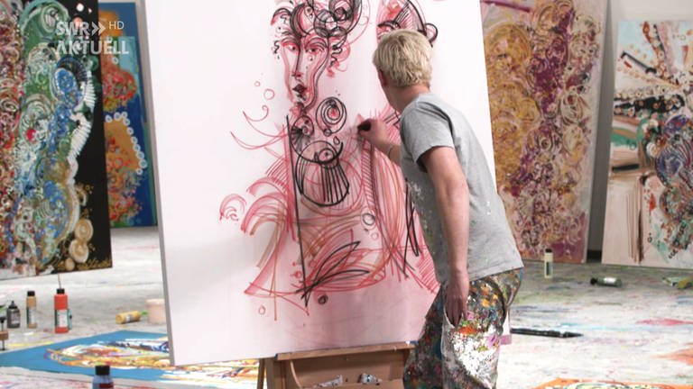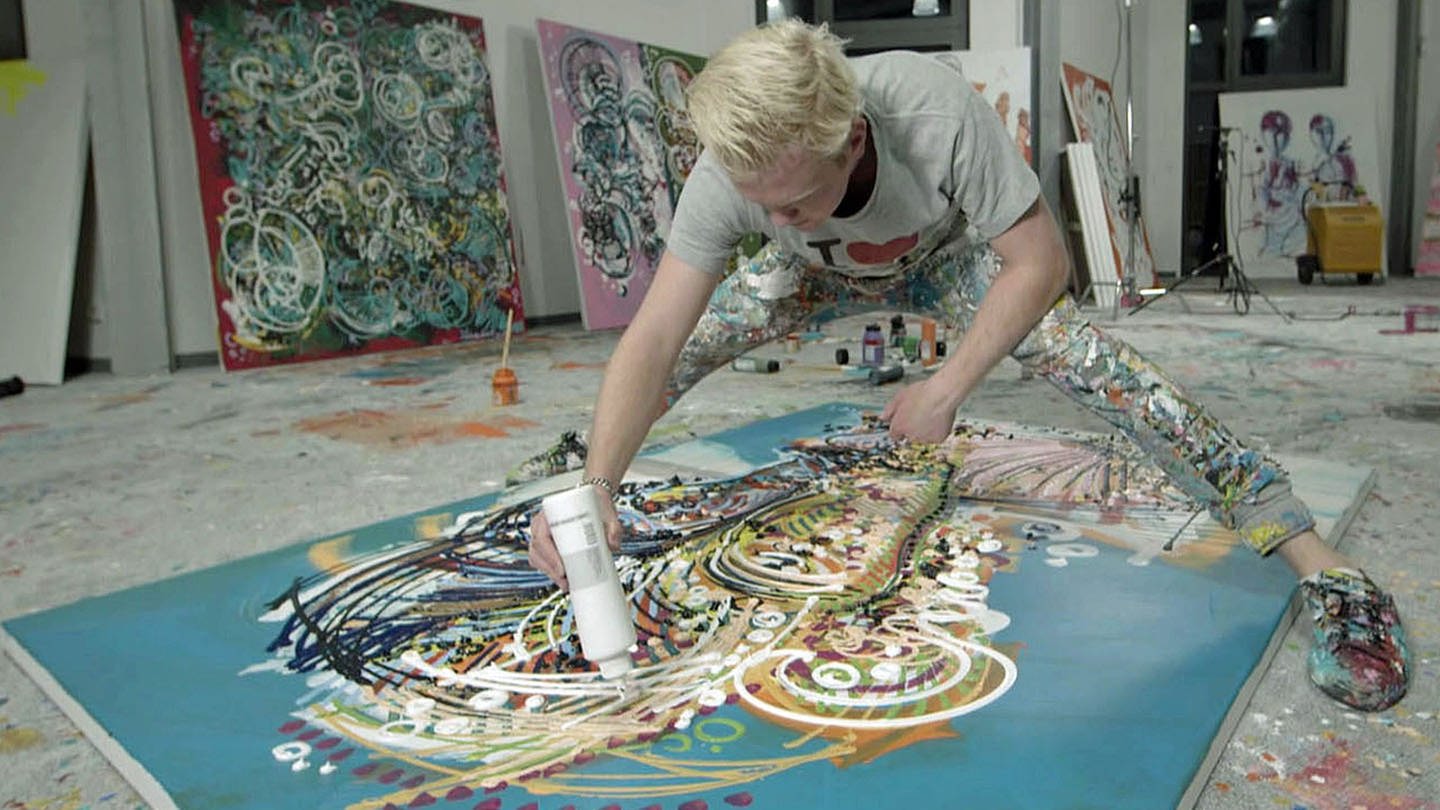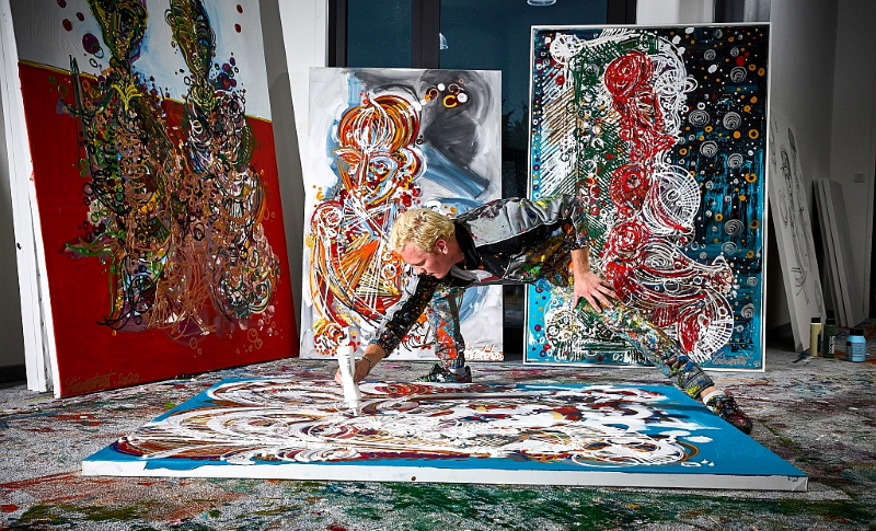 Leon Löwentraut egy 22 éves emberke, aki fogta magát és elkezdett színeket feltenni vászonra és egyebekre.