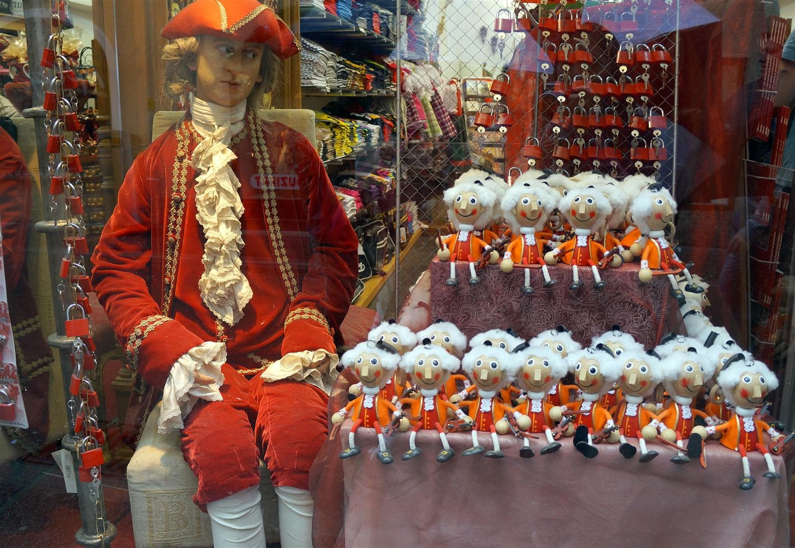 …. hogy egy komplett utca ennek a nyavalyásnak van szentelve. Mozart emlékbolt, Mozart zenebolt, Mozart parókabolt, Mozart szuvenírbolt, Mozart kulcstartóval, hajkefével, hűtőmágnessel, táskával, strandpapuccsal, hőmérővel, termosszal, fogkefével, autóillatosítóval, kotonnal, szájvízzel, violin-, basszus-, és pincekulccsal.