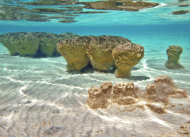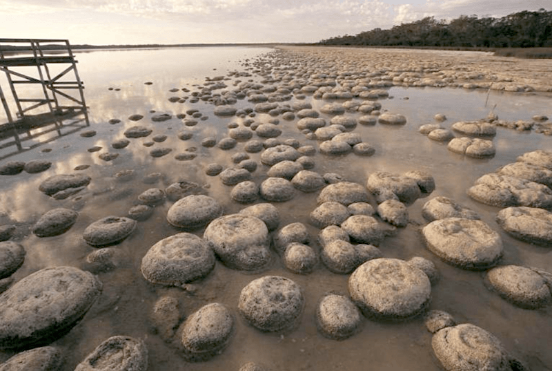 Az eddig ismert legősibb lény a cianobaktérium, ami vagy rétegesen megkötve az üledékszemcséket, vagy rögösen elmeszesedve élő köveket épített.