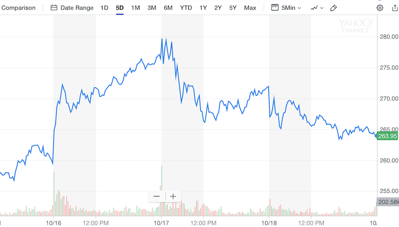[stockdio-historical-chart symbol=”TSLA” stockExchange=”NYSENasdaq” width=”95%” height=”380″ motif=”financial” palette=”Mesa” days=”5″]
