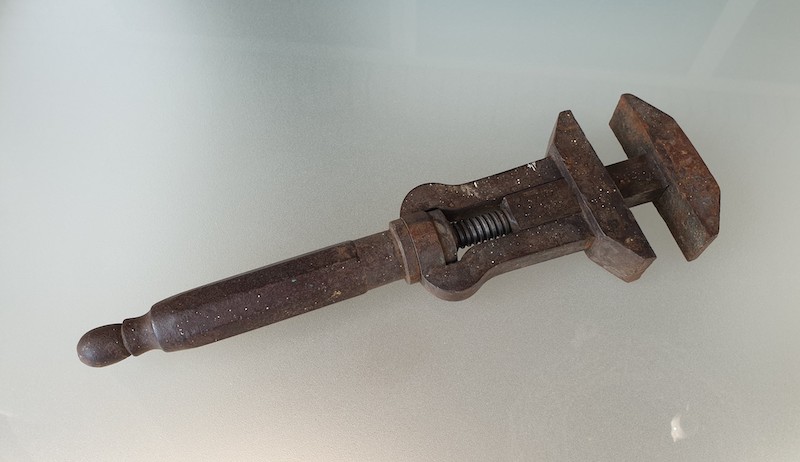 Viszont amikor a tökéletesség nyomában járunk, jön a következő kérdés: ha már ilyen sokoldalú a szerszámunk, nem lehetne még egy picivel több? Dehogynem! Használjuk egyből kalapácsként is! Így születhetett meg az ugyancsak csavaros szorítású franciakulcs. Aminek az illusztrálására álljon itt egy elbűvölő art deco példány, hogy a vérünk is megpezsdüljön ennyi sok esztétika láttán.
