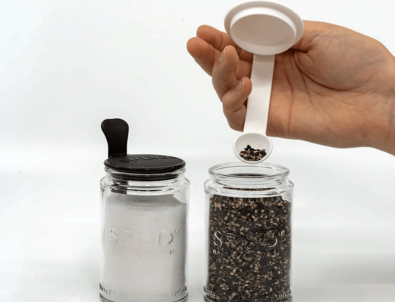 Mert ugye sokan szembesültek már azzal a dilemmával, hogy adott egy kisebb-nagyobb fedeles üveg, abban található a fűszer, só, cukor és valahogy bele kellene adagolni az ételbe. A receptek is többnyire kiskanálról, evőkanálról, csapott mokkáskanálról értekeznek és ilyenkor fel kell túrni a fiókot, hogy pont a megfelelő méretű kanállal oldjuk meg a feladványt.