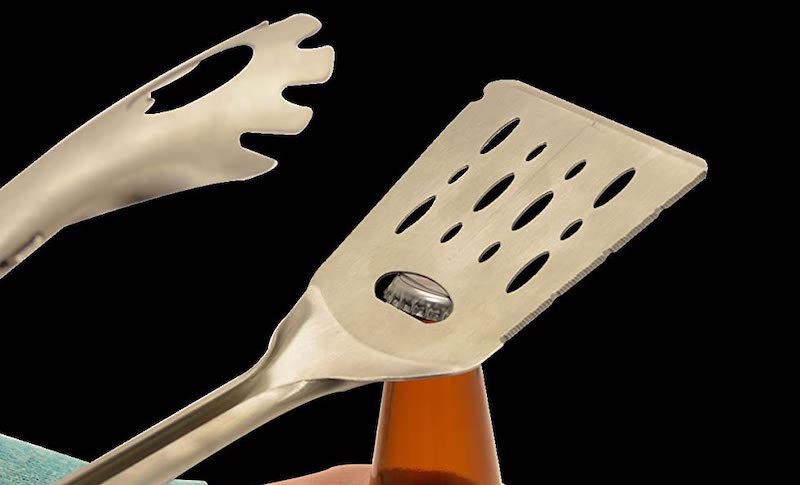 Ha már ennyitől leesett az állunk, akkor a következő műtárgytól nem kizárt egy arckoponyaszalag-diszlokáció sem, ugyanis a KOVOT 6-in-1 Multitool nem kevesebbet ígér, mint egy teleszkópos szárú grillező csipesz, egy spatula valamint recézett vágóél, továbbá egy zseblámpa funkcionalitását egy kézben.