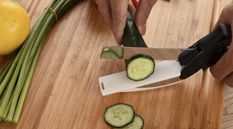 A végtelensokaságból időnként kitűnnek olyan mesteri darabok, ahol a hűha faktor erősebb az átlagnál, ilyen a mai első céleszközünk a Csinhua (Xinhua) manufaktúra tervezőműhelyéből, nevezetesen egy okos konyhakésdeszka, azaz Clever Kitchen Knife with Cutting Board, ami szemmel láthatóan egy aprócsinhua vágódeszkácska és egy kés szerelemgyermekeként jött a napvilágra, nem is akárhogy, ugyanis egy tengely és egy rugós mechanizmus hozzákombinálásával máris összeállt a leírása szerint zöldség, gyümölcs, hús, kenyér és tulajdonképpen bármi más felszecskázására alkalmas apparátus, amiket amúgy a vágódeszkán szeletelnénk apróra. A különbség látványos, a használat során a virgonc deszka sosem tud félreszökkenni a kés éle alól, ahogy a pengével se cakkozzuk össze a német katalógustrendet követő bükkfamintás feldolgozólapot. Bámulatos.