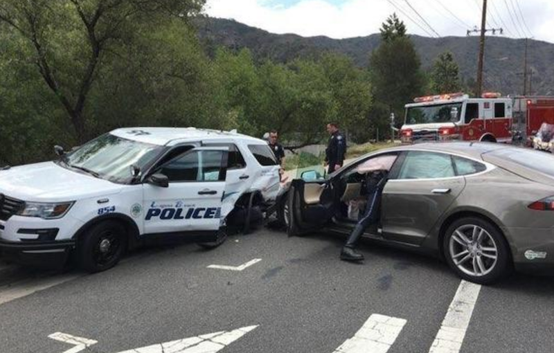 Kurva szar autók – a Tesla beleállt… de pont egy rendőrautóba?