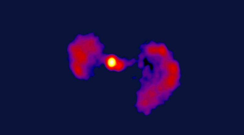 Darth Vader ikonikus fighter-ére emlékeztették a kutatókat a nagyjából 500 millió fényévnyire található TXS 0128+554 aktív galaxismagról (Active Galaxy Nucleus – AGN) készült legújabb felvételek.